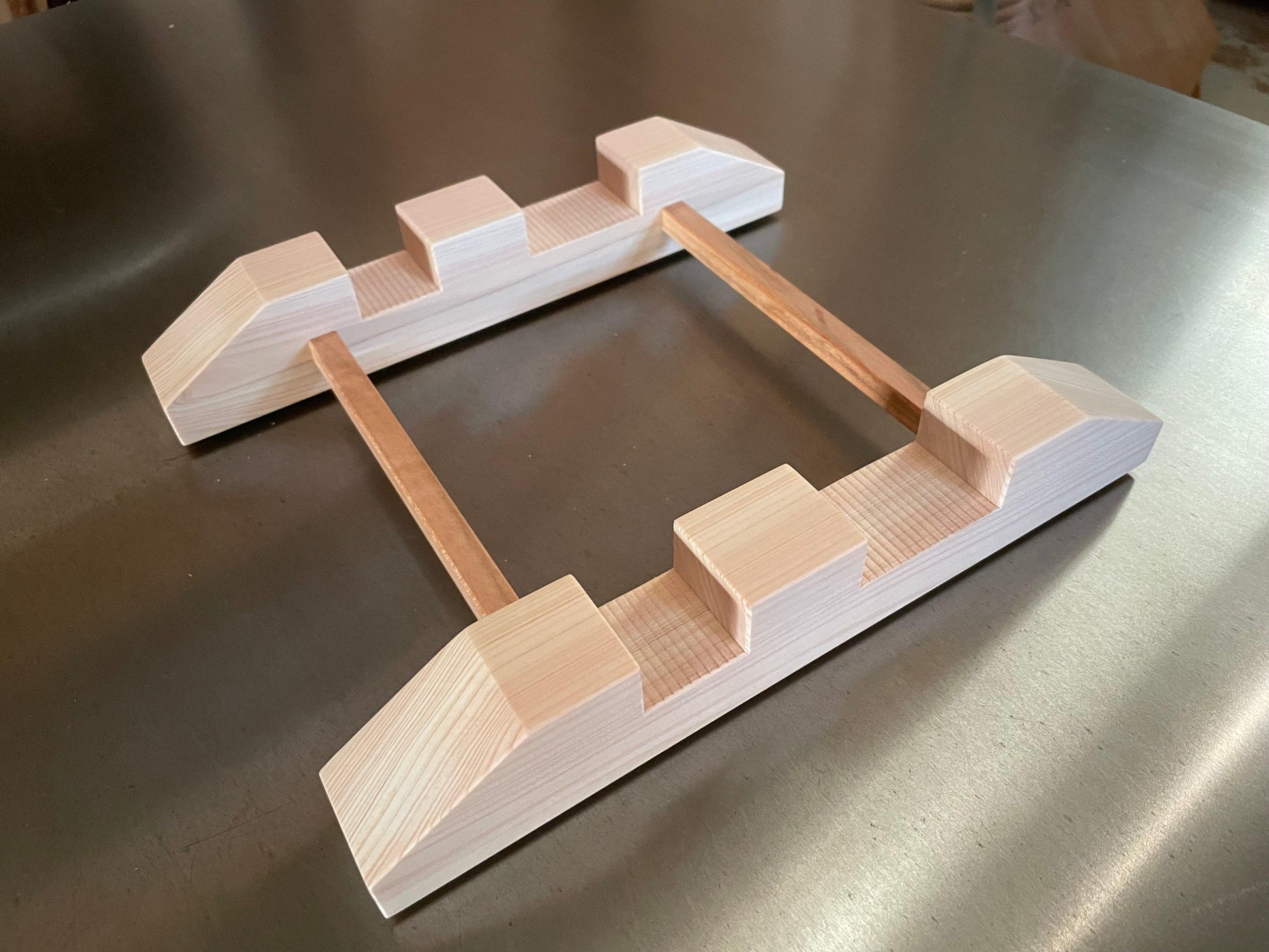 Hinoki wood is used for the base part, and Japanese cherry are used for the connecting material.