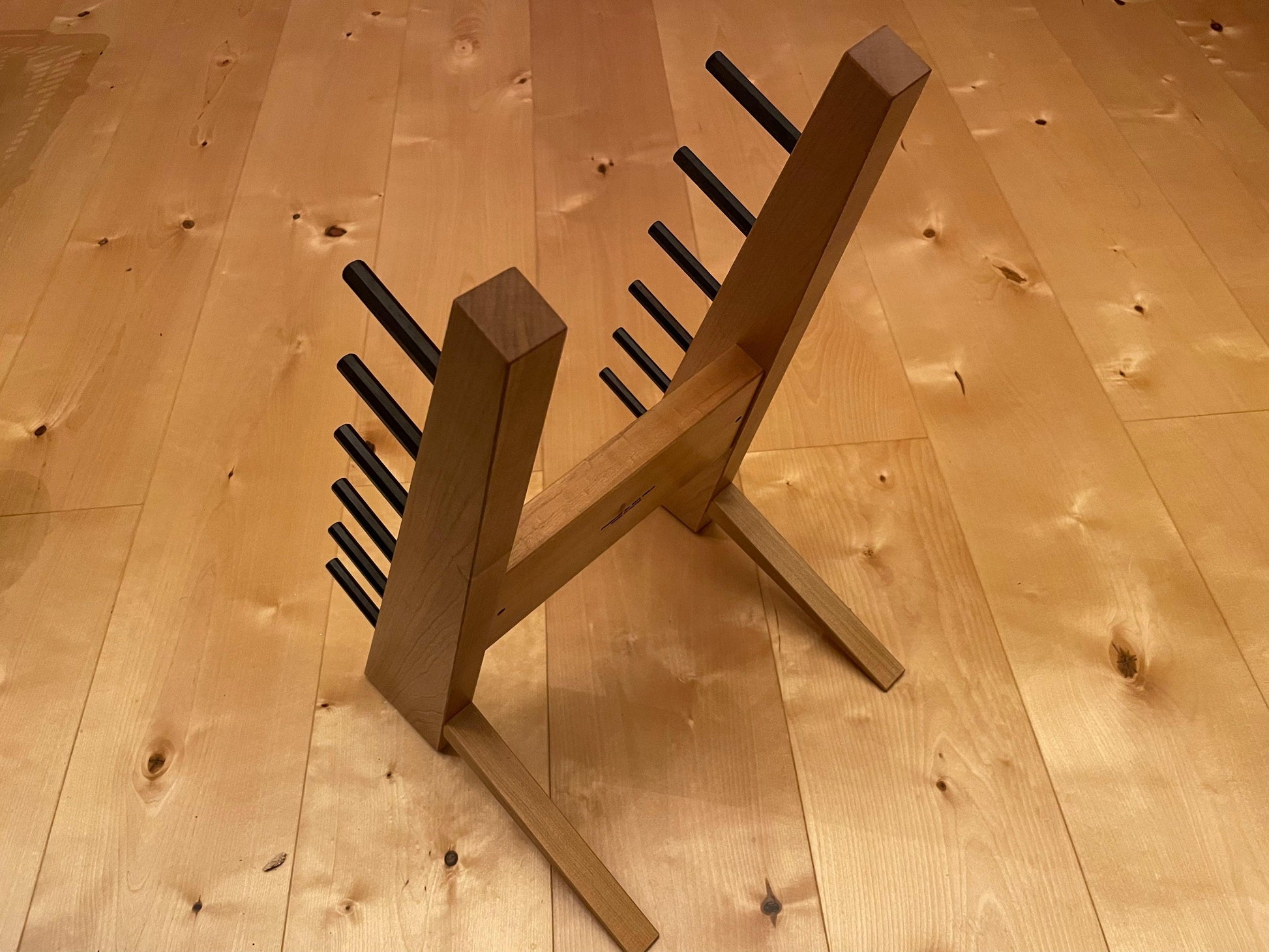 A knife stand made of solid ebony and solid Japanese cherry.