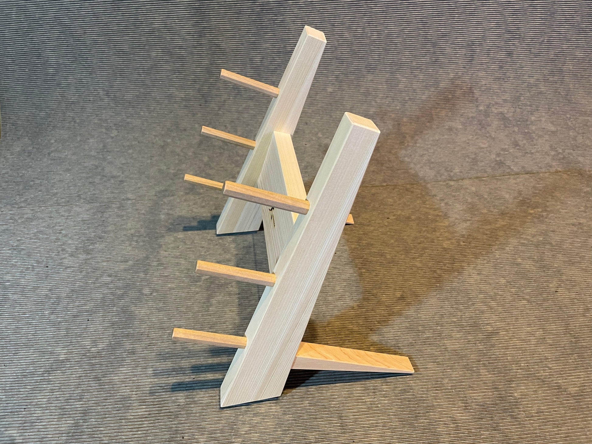 A knife stand made of solid ebony and solid Japanese cherry.